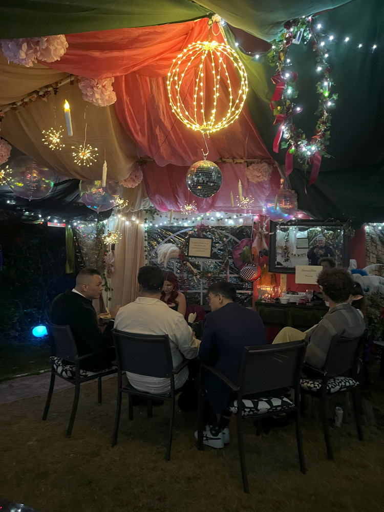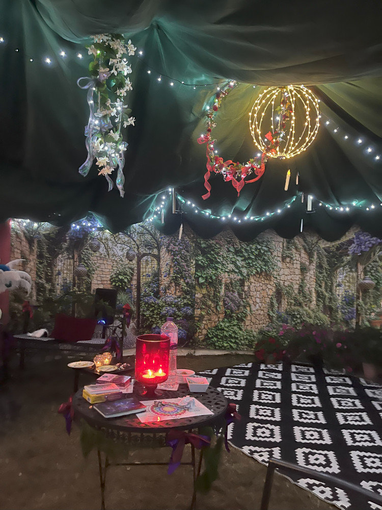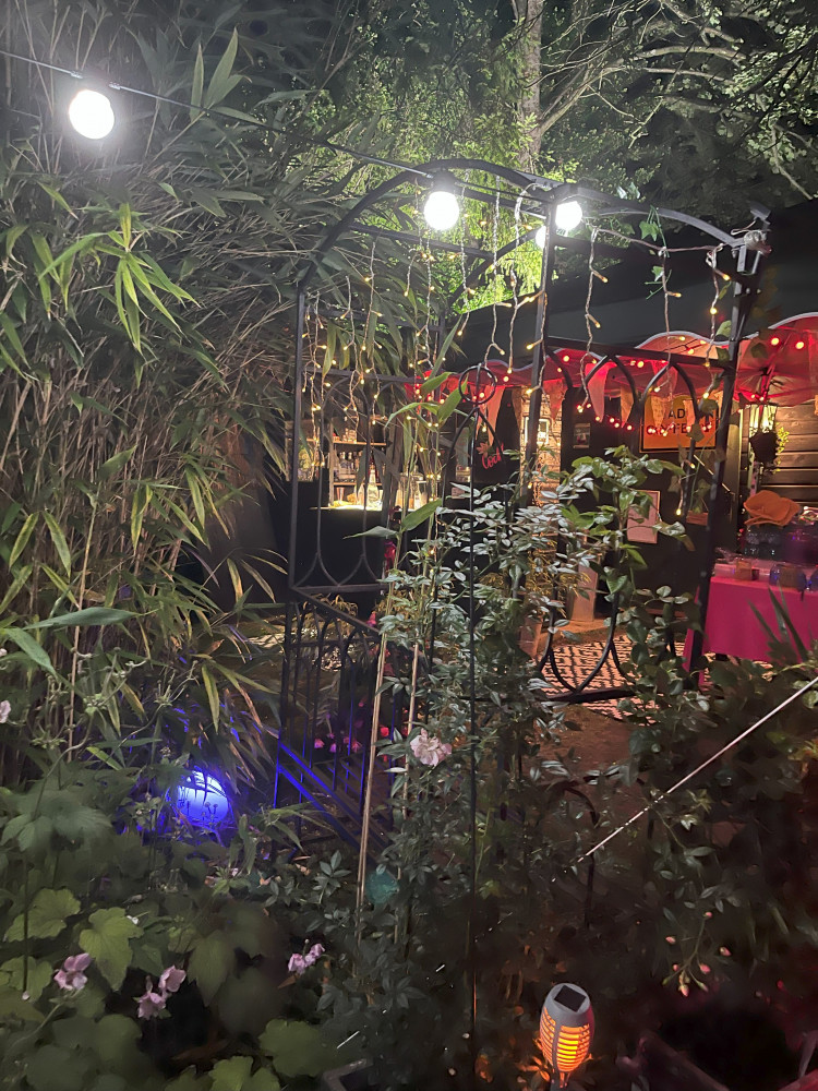 I cannot describe how wonderful it was. An amazing little hideout at the bottom of the garden specifically for giving readings. A marquee for a disco. And room to stay dry for chatting.